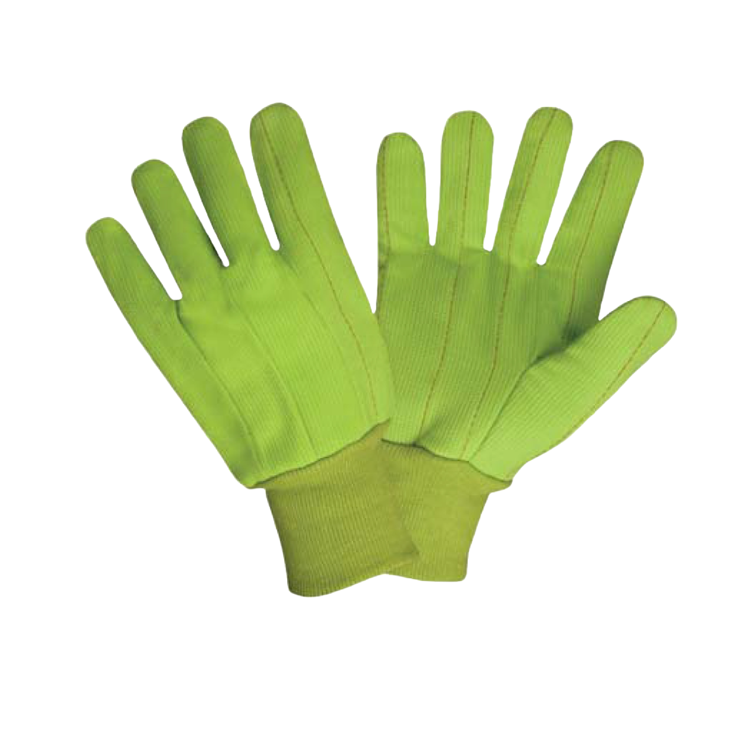 High Visibility, Lime Green, 18-ounce, Double Palm Gloves, 100% Cotton Corded Canvas Fabric, Clute Pattern, Lime Green Knit Wrist #2850CD